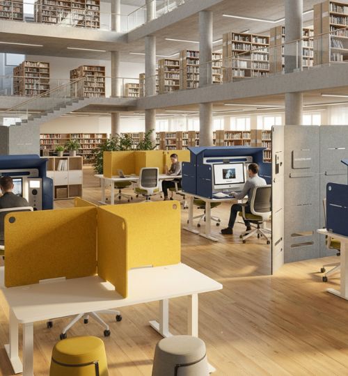 Verwandeln Sie Aulen oder Bibliotheken im Handumdrehen in professionelle Prüfungsbereiche. Visuell und akustisch abgeschirmte Plätze für Klausuren, Nachschreibetermine oder digitale E-Assessments – flexibel dort, wo Platz ist.